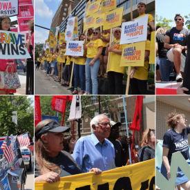 Vermont Senator Bernie Sanders marched with a crowd of hundreds to the Iowa Hall of Fame event in Cedar Rapids Sunday afternoon with striking McDonald’s workers from Des Moines and Cedar Rapids. The workers were demanding the right to unionize so they can raise their pay, end sexual harassment and workplace violence. Chants of "This…
