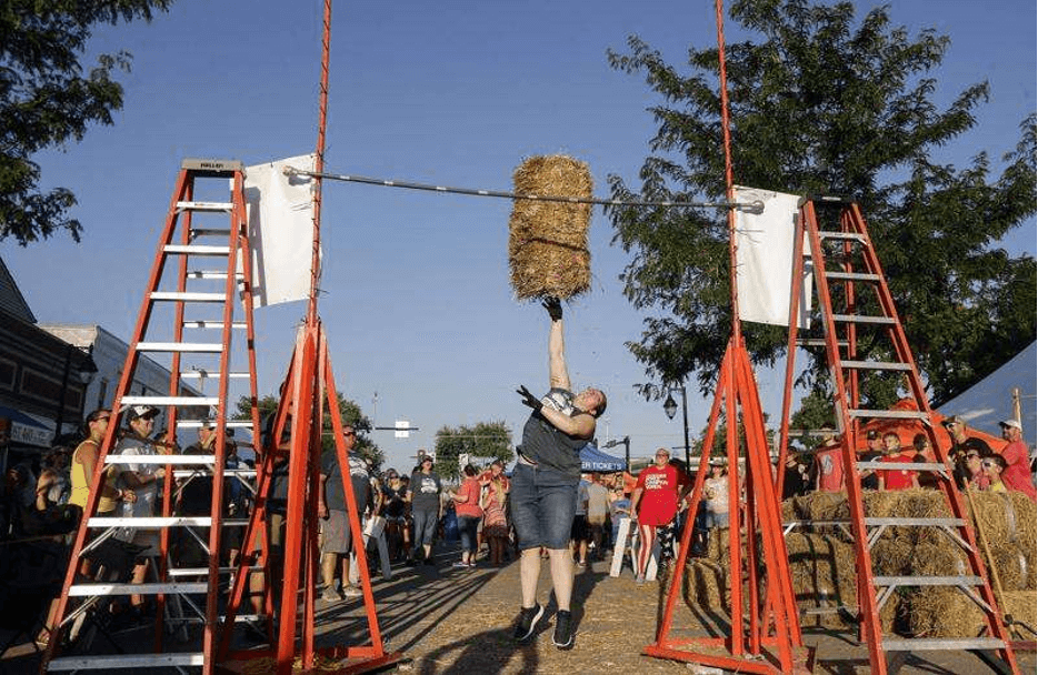 Of course you’ll find carnival rides, lots of vendors to shop, and musical entertainment each day and night. There’s a fun run and parade and a bags tournament. The hay bale throwing contest is a crowd favorite. Anyone can sign up to join. It will help you work up an appetite for the steak dinner served Friday evening.