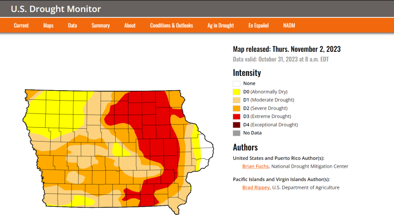 Heavy rainfall in October 2021 also improved a lot of the conditions in Iowa and have meant the impact of a dry 2023 hasn’t been as dire as it could have been.