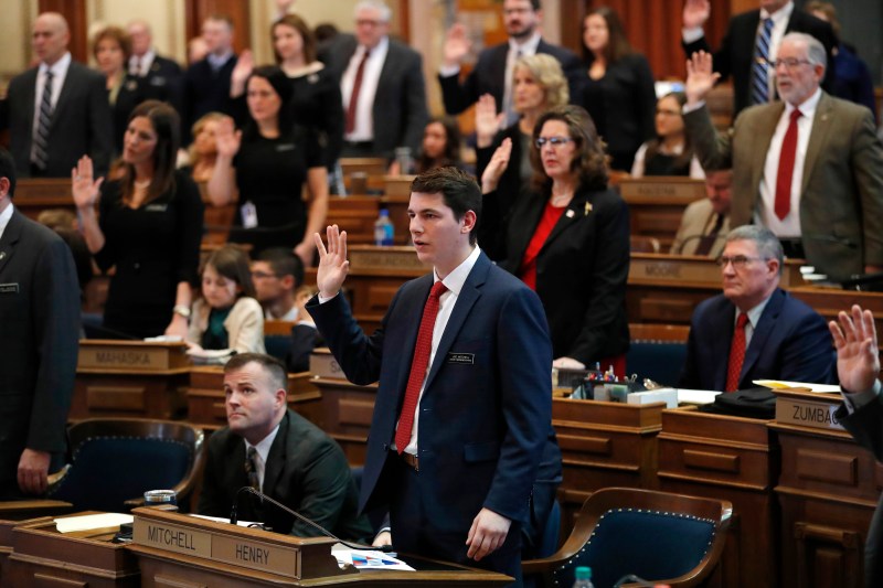 Radio Iowa reported Mitchell spent the last half of his senior year in high school working as a page in the Iowa House. He studied at Drake University in Des Moines “so he could continue working in the state capitol.” While in school, he worked at the Capitol for four legislative sessions, working as a page, a clerk, and even an intern for Gov. Kim Reynolds’ office. According to his Future Caucus bio, Mitchell also worked with “a multi-client lobbying firm where he helped represent a variety of clients on issues involving healthcare, taxes, education funding, and regulations.”