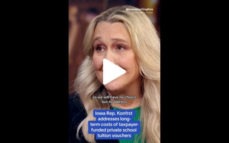 Iowa House Minority Leader Rep. Jennifer Konfrst (D-Windsor Heights) addressed the long-term costs of Gov. Reynolds’ private school tuition voucher program, formally known as Education Savings Accounts (ESAs), for Iowa taxpayers in a recent interview on “Iowa Press.”