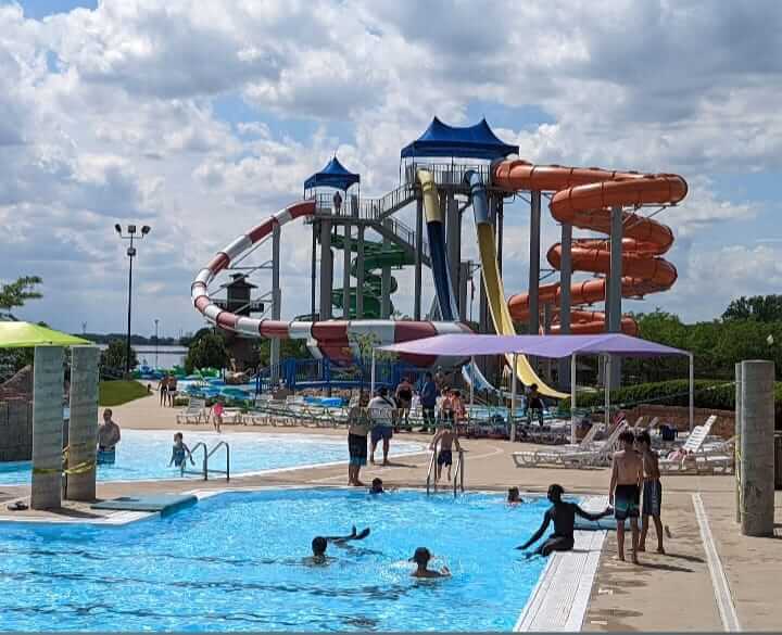 Advertised as “The Only Aqua Zip Line in Iowa,” the attraction starts off on an 8-foot platform before riders zip down toward the water. In the indoor part of the water park, there is a hot tub for adults who need to rest their weary bones, along with a few more waterslides to try if the outdoor summer weather drives you indoors.