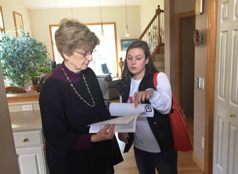 “I have Des Moines 34 for you today, our most important precinct,” Sabine tells Nilsen for encouragement as she goes over the call list and new script in Nilsen’s entryway.