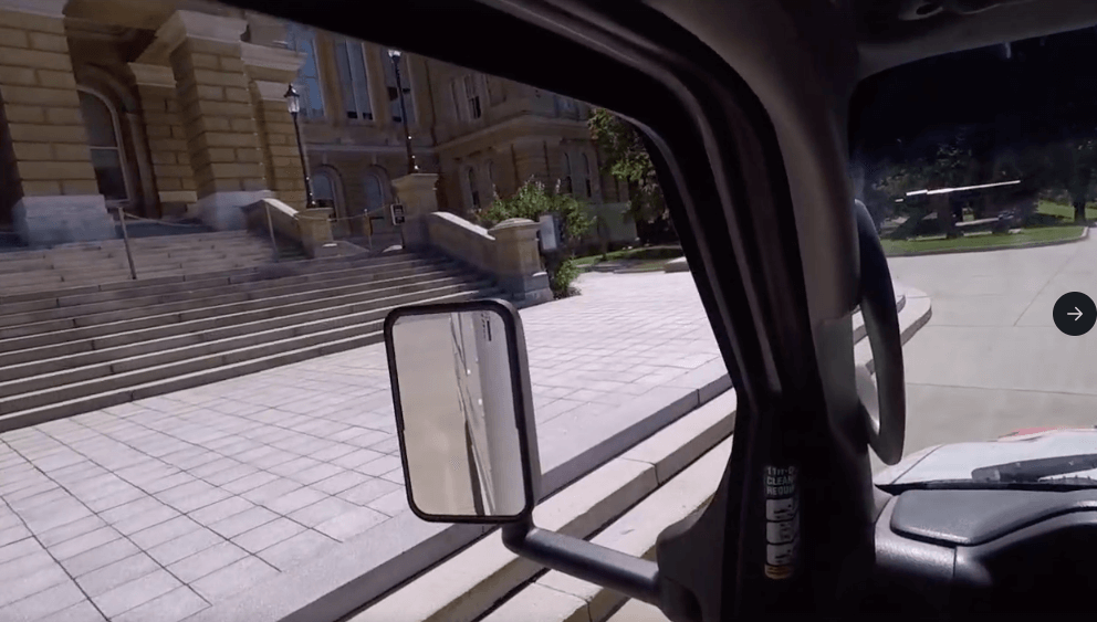 In addition to showing him driving around Des Moines, the video recaps some of the media coverage sparked by Crew 319’s actions in Oelwein. It also shows the driver performing the Heil Hitler salute multiple times to pedestrians and other drivers.