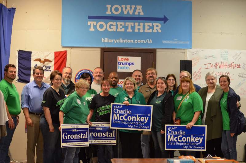 As the final countdown begins for the close of polls in Iowa, thousands of volunteers are spread out across the state knocking on doors, collecting absentee ballots and dragging every last person they can get to the polls. A big part of Democrats’ GOTV efforts come from organized labor, and AFSCME is providing a good chunk of that, both for Hillary Clinton and down-ballot legislative candidates.