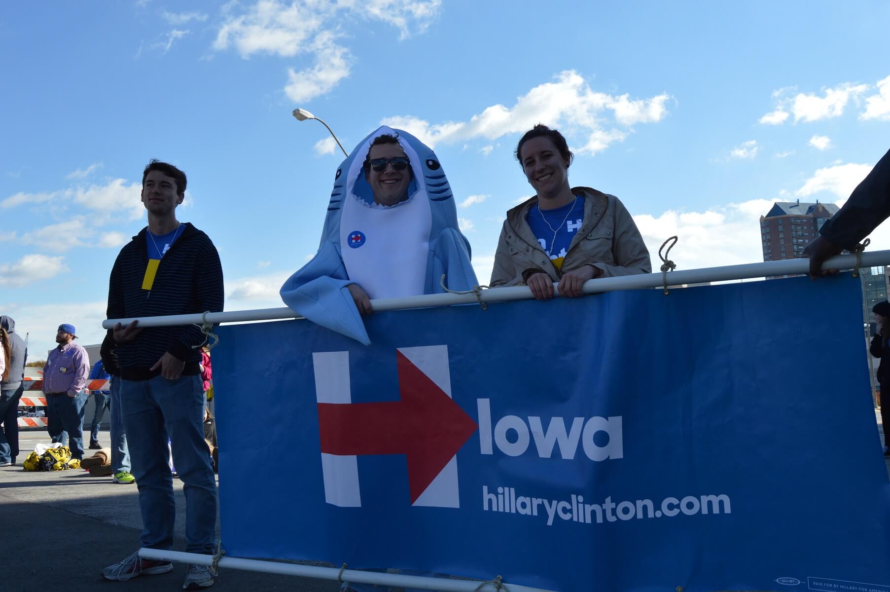 After rallying on 5th Avenue for most of the morning, the Clinton team moved over by their Katy Perry concert area south of Vets Auditorium.