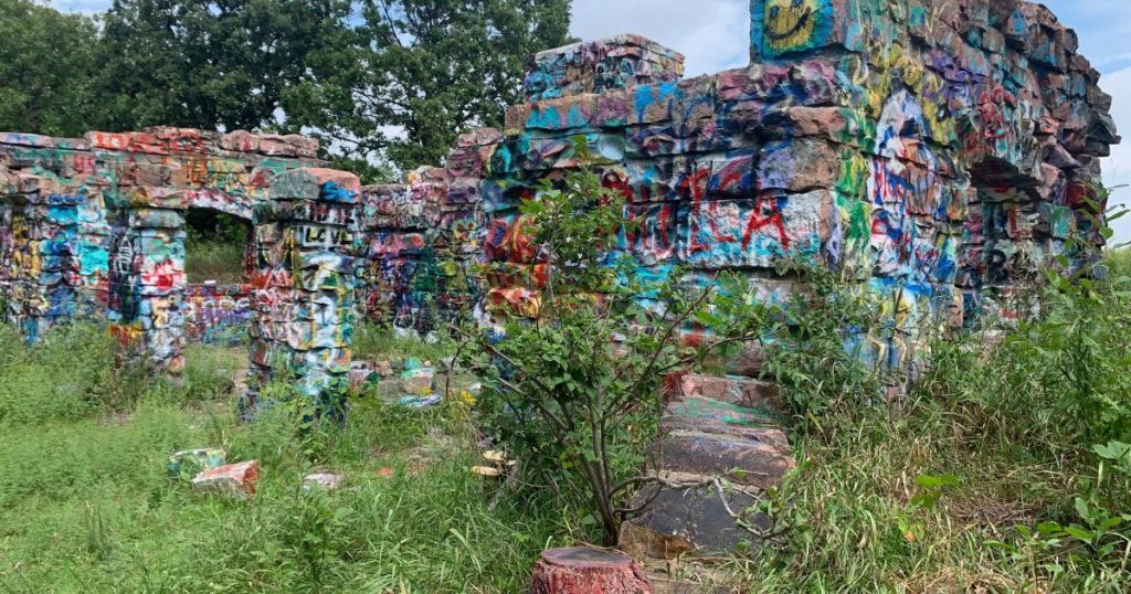 Of course, there’s also all of the colors, in spray paint, covering nearly every inch of the exposed Sioux quartzite along with dilapidated half-structures that remain at the park. It’s a bit disappointing to see, but that’s mostly because a lot of it is amateurish graffiti—names, dates, and curse words only for the shock value. (I live in Waterloo, where spray-paint artists go big, so I suppose I have a high bar.)
