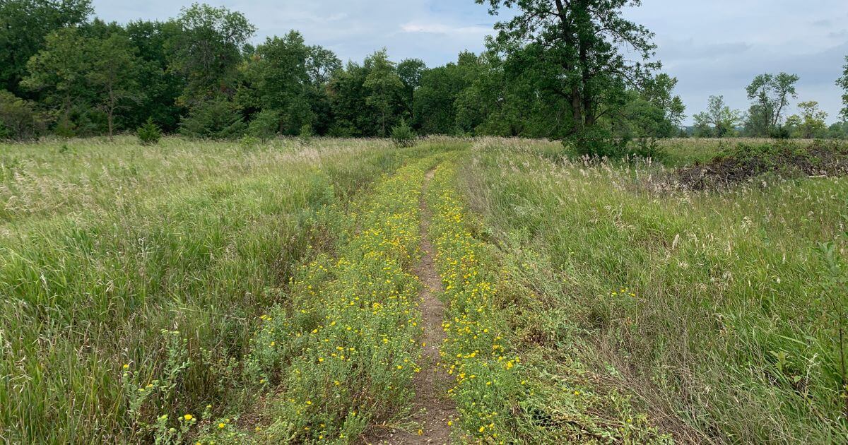 My late-summer hike meant the wild prairie that encompasses much of the preserve was tall and blooming in a lot of tall green and brown grasses, yellow goldenrod, and some other purple and pink flowers also scattered about.