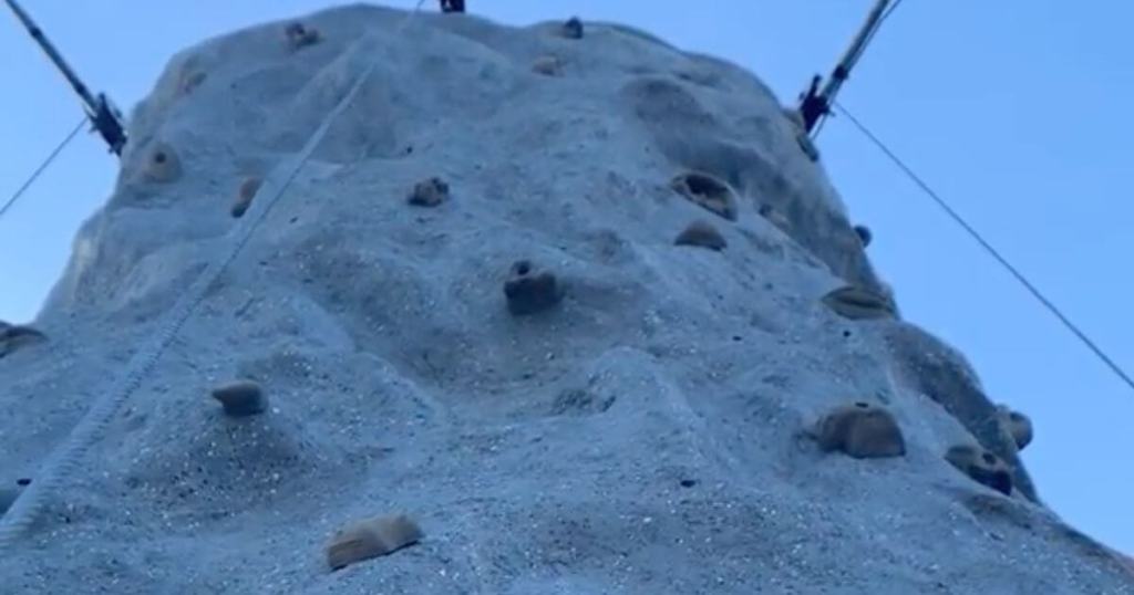 And though the fairgrounds are relatively flat, I made sure to get my elevation in with the climbing wall in the southwestern Thrill Town. (I failed at the “hard” side, then somewhat redeemed myself on the “easy” wall instead.)