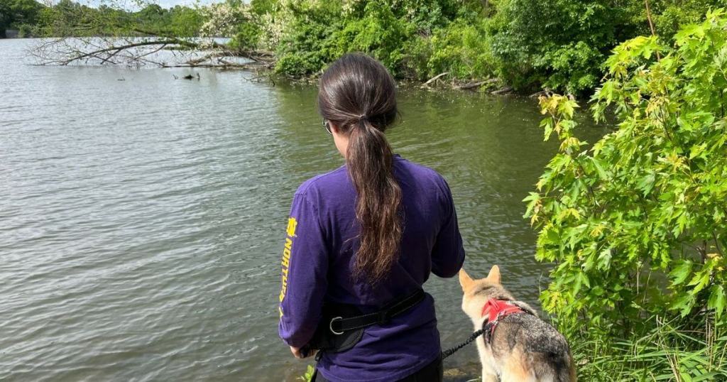 Amie and Phoenix watch the water at Pine Lake State Park.