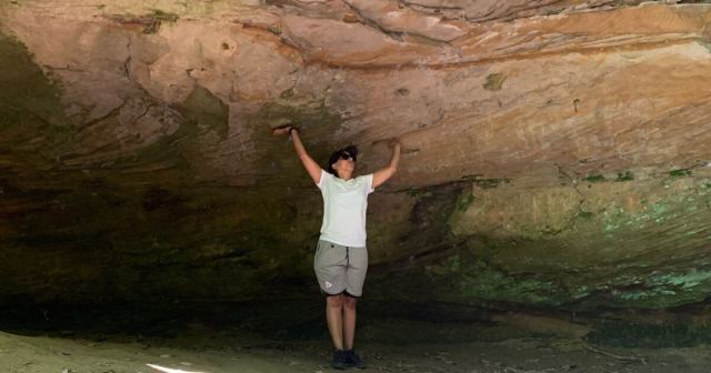 Sandstone is a cool rock—hard enough to climb up, but soft enough you can scrape sand off of it with your hands. Its color is dependent on the minerals it collects along the way, which in Wildcat Den’s case is anywhere from gray to red (read more about the sandstone and how it formed here).
