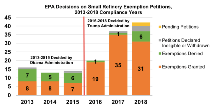 The last three years have been brutal for the ethanol industry in particular, due to a proliferation of refinery exemptions that dropped the demand for ethanol. That’s led to job losses in Iowa, plant closures and the fallout of losing production of by-products like low-cost feed and biodiesel.