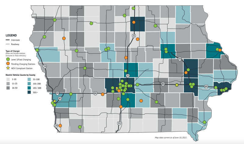 Iowa has 221 public charging locations across the state, with more pending. Most have more than one spot to charge, and this plan will only expand people’s options.