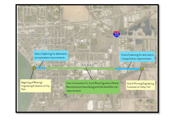 The Cedar Falls Mains Street Revitalization project is estimated to cost $31 million and involves a complete reconstruction of Main Street between University Avenue and Sixth Street to include complete streets enhancements, dedicated on-street bike lanes, accessible sidewalks and trails for people with disabilities, mid-block crossings, transit stops, and lighting and underground utility improvements.
