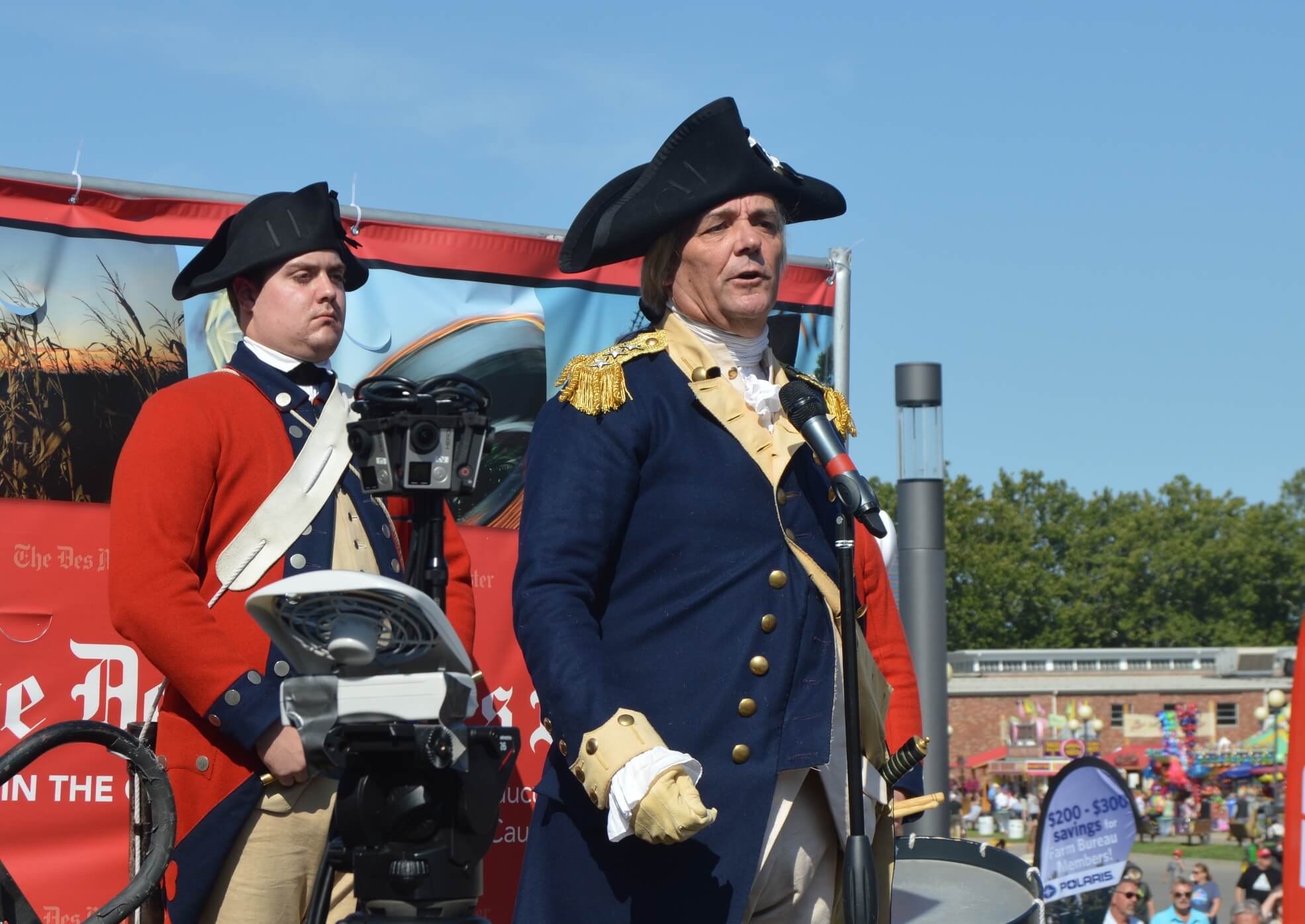 The first speaker up on the Des Moines Register’s Soap Box happened to be America’s first President, George Washington. While candidate Washington enjoys the highest name ID of any White House contestant, he too is polling behind Donald Trump. Ok, so it was actually an actor from colonial Williamsburg – and a pretty good one, too. Washington encouraged participation in the Iowa Caucus and voting process, and gave a warning about the rise of “factionalism” in American politics. Though for a guy who led off telling the crowd in-character that he’s never seen a microphone device before and used the word “betwixt” a lot, the former first President sure is good at Twitter, sending out amusing pictures from his time at the fair. Seriously, check out his Twitter feed, especially his baller walk-off after throwing a good pitch at an Iowa Cubs game: