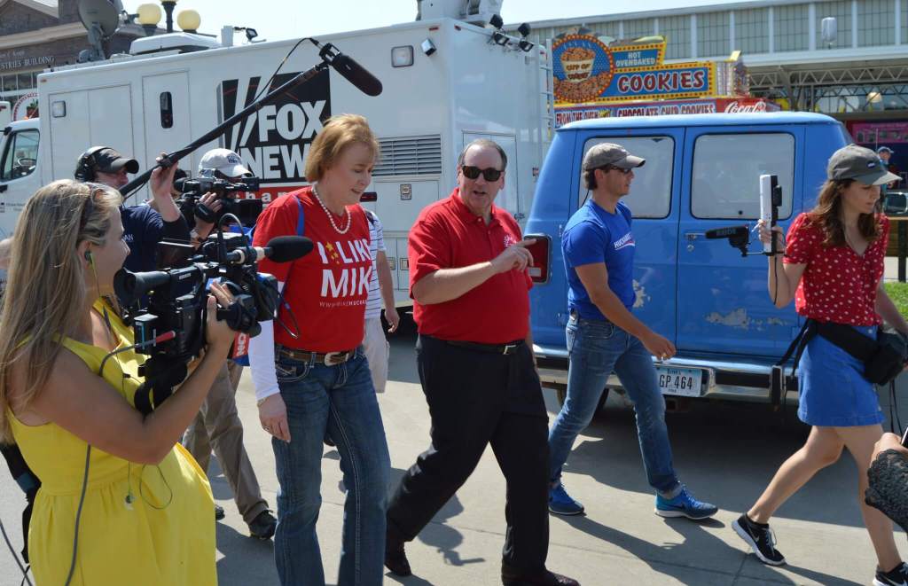 Webb seemed to enjoy most of his time at the State Fair – except, noticeably, on his way out as a large press scrum surrounded him. He kept walking at a brisk pace as reporter after reporter jumped in to ask him questions. “It’s like one of the Beatles,” reacted a man to the heavy press entourage trailing Webb.