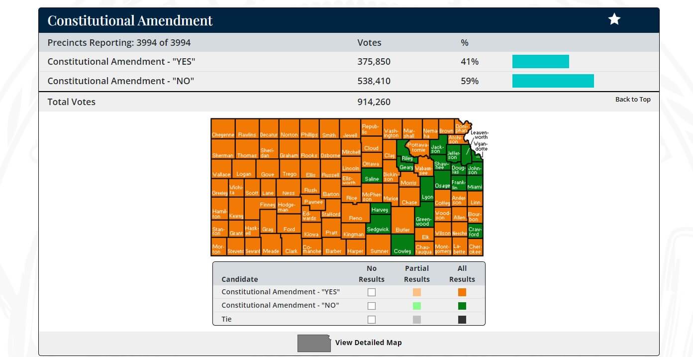 And turnout they did. In total, more than 900,000 people—about 47% of all registered voters—showed up because of the amendment. That’s much higher than the 20-30% primary elections generally receive, and the 36% the Kansas secretary of state predicted. The amendment got more votes than any other item on the ballot.