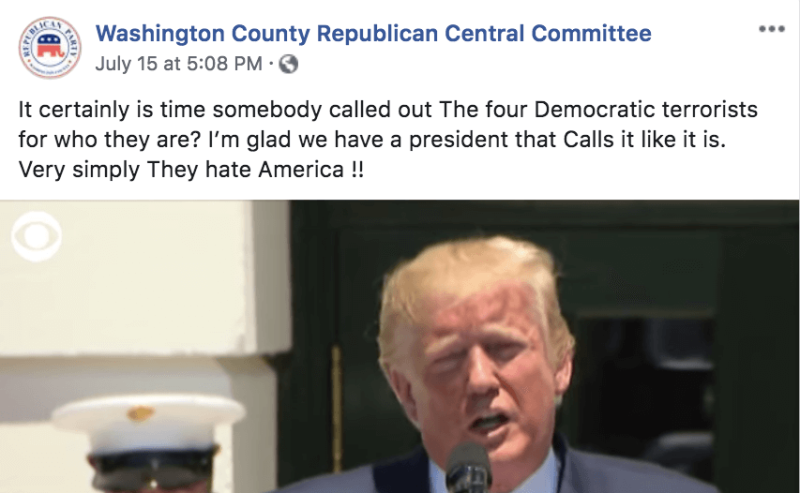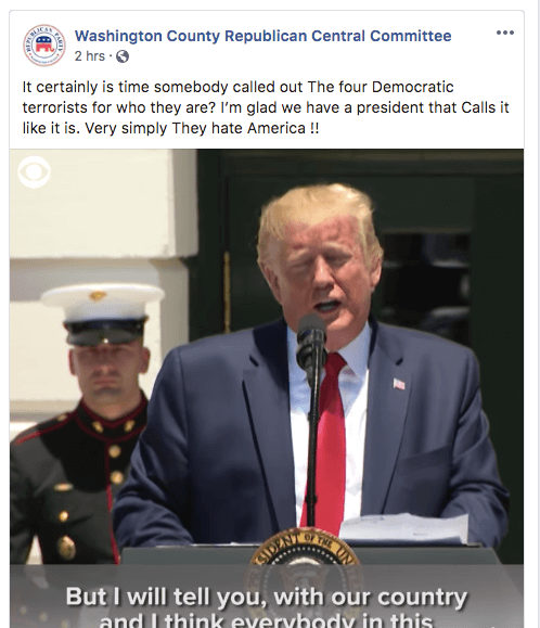 The Washington County Republican Party in Iowa took the lead of President Donald Trump’s racist smears on four Democratic congresswomen and ran with it last week, going a little further than their party leader. A Starting Line reader directed our attention to the post made on July 15.