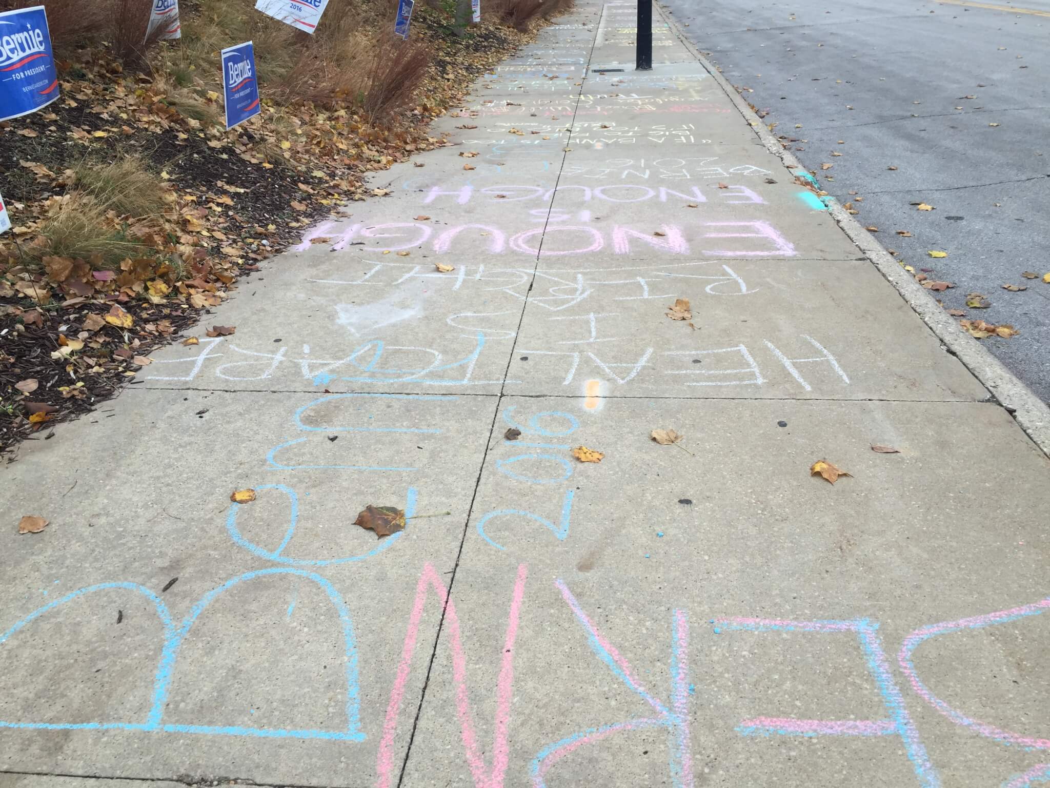 They also chalked the sidewalks along the route of the march.