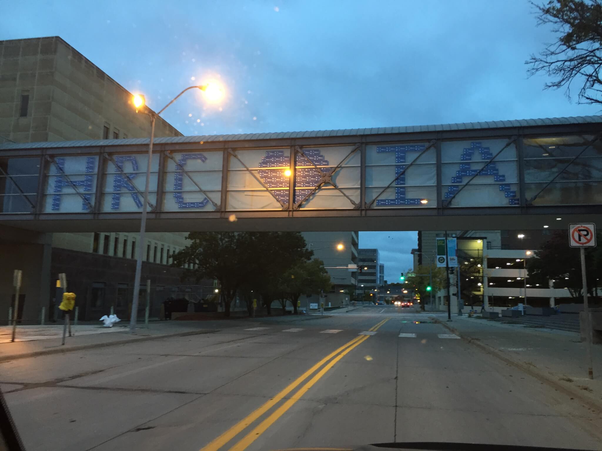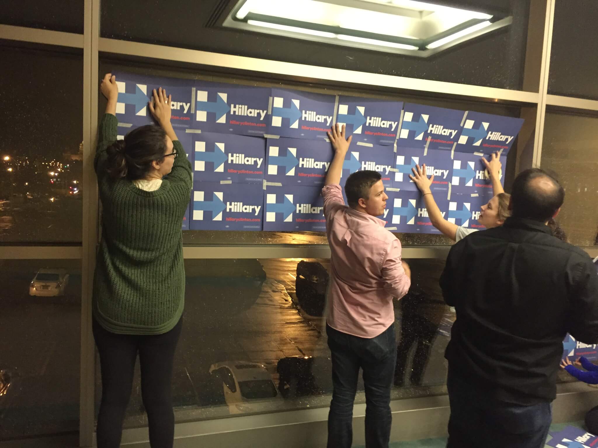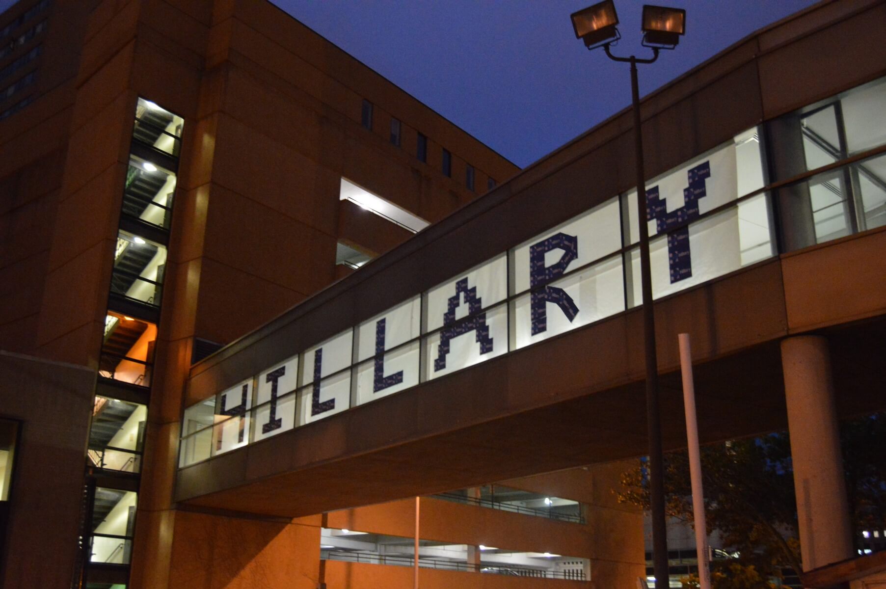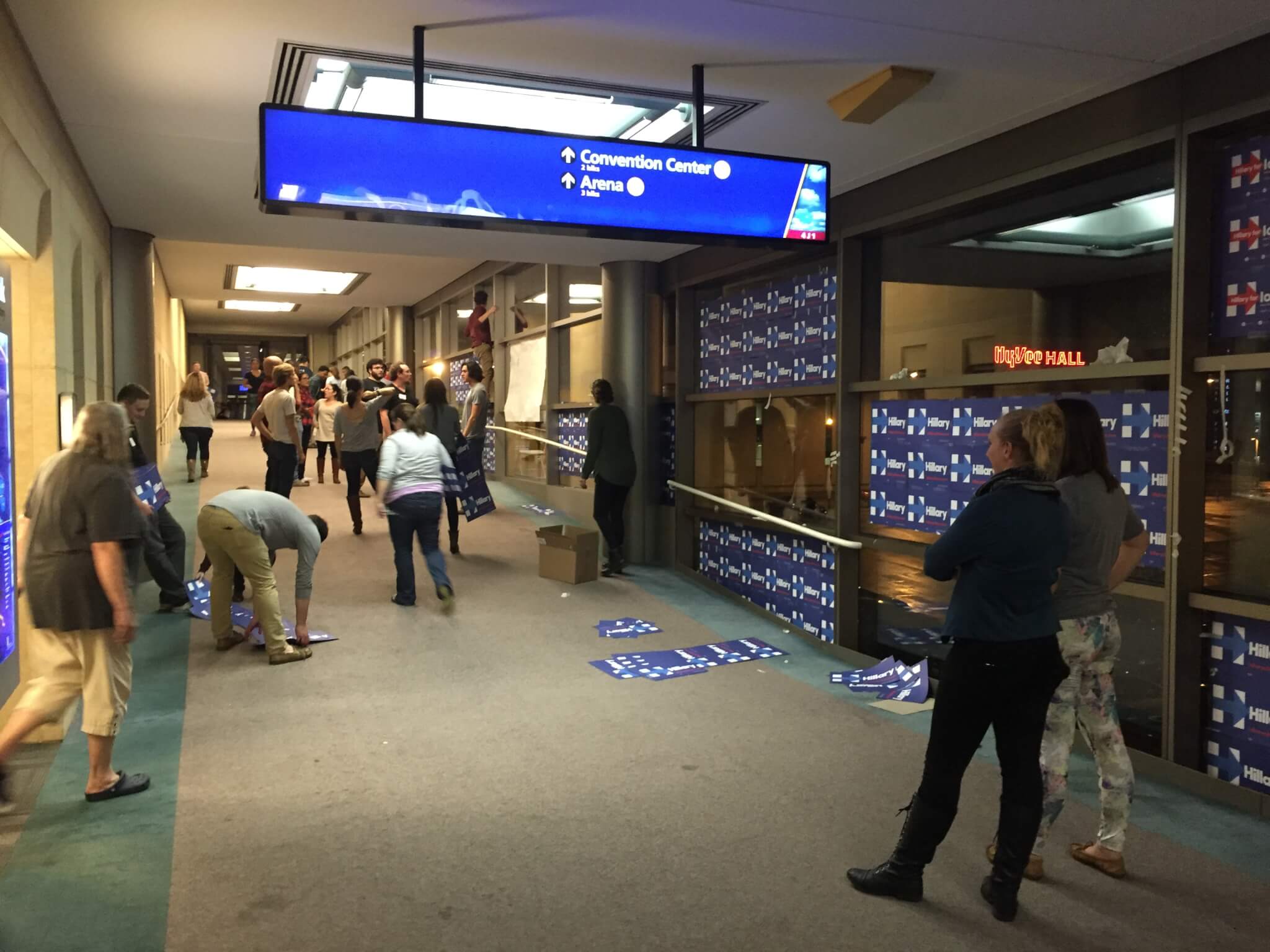 The Clinton team ensured that everyone walking into the dinner today will be traveling through Clinton-decorated skywalk tunnels.