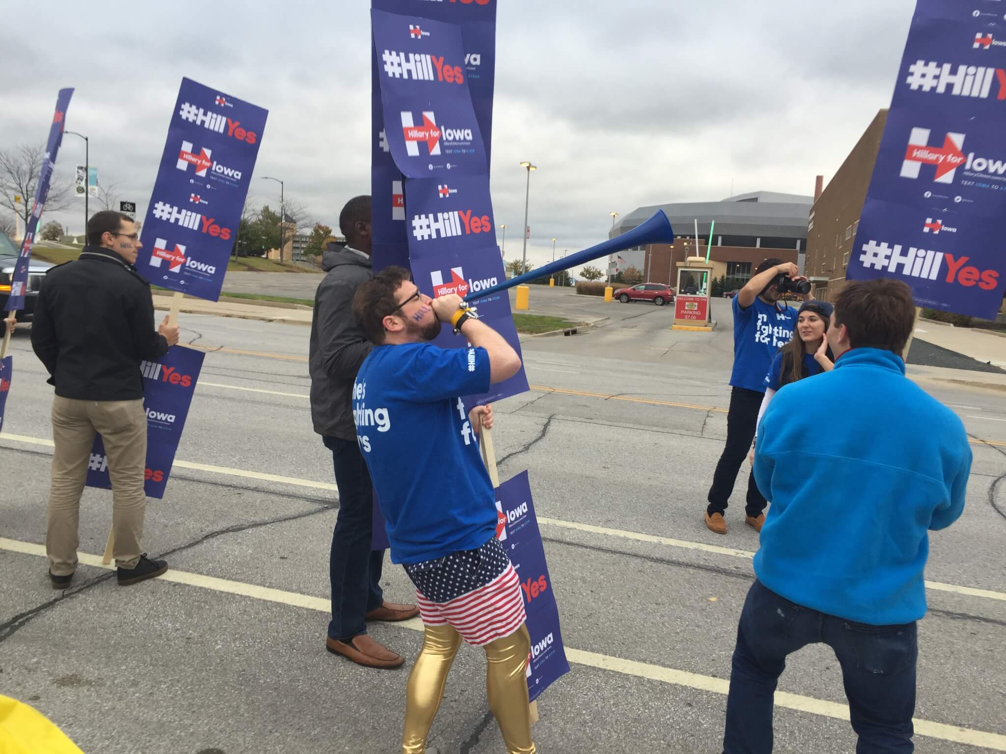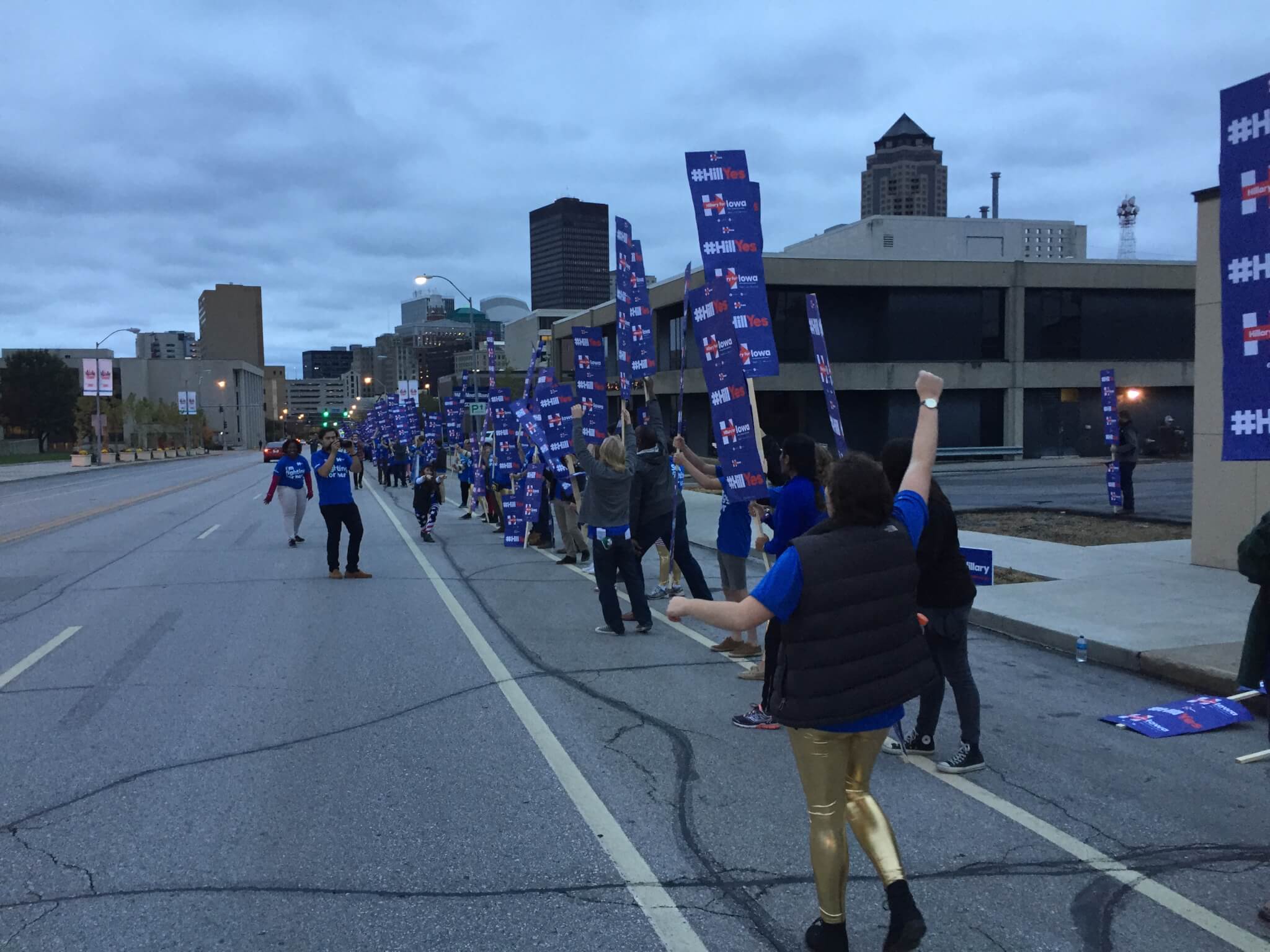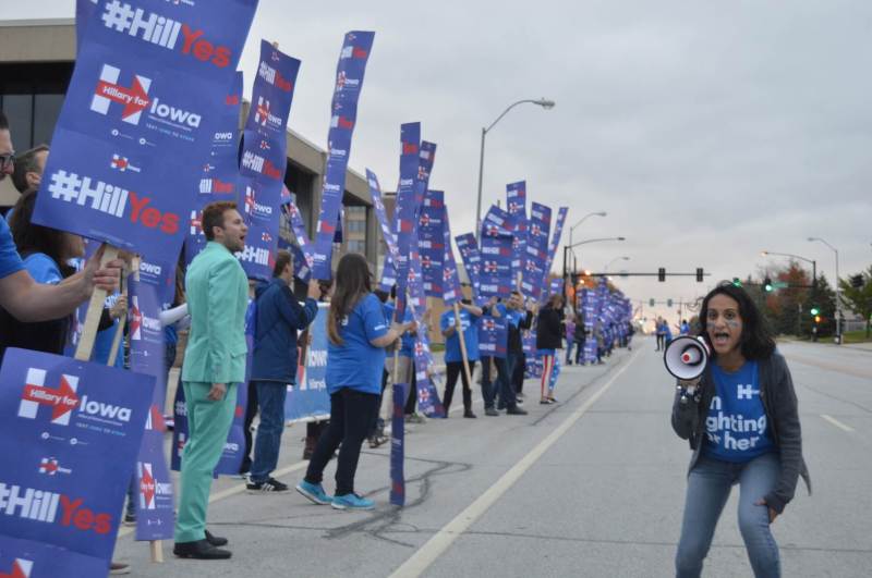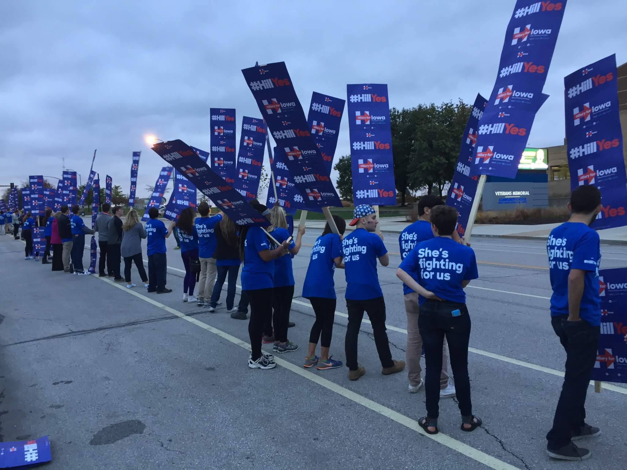 .@HillaryforIA team out in force early at 7:30am… planning to cheer for as long as Hillary testified? #IACaucus pic.twitter.com/FSwjug5czI
