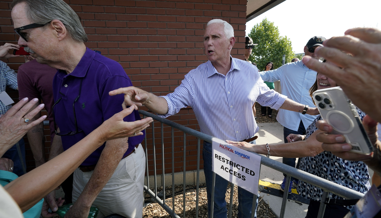 During the rehearsed potion of his Soapbox speech, Pence was calm, conversational and pretty boring—a stark contrast to some of the more bombastic speakers, like Vivek Ramaswamy and Francis Suarez. It wasn’t until he was challenged for his role in the January 6 insurrection that Pence seemed to come to life.