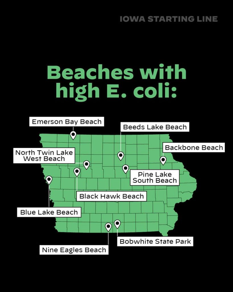 George Wyth is routinely on the list of state park beaches with “do not swim” advisories, which the Iowa Department of Natural Resources publishes each summer. Usually, George Wyth gets flagged for high levels of E. coli, which local officials blame on a combination of poor drainage and the resident goose population (though birds sometimes unfairly get blamed).