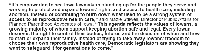 - adding reproductive freedom to the Iowa Constitution;
