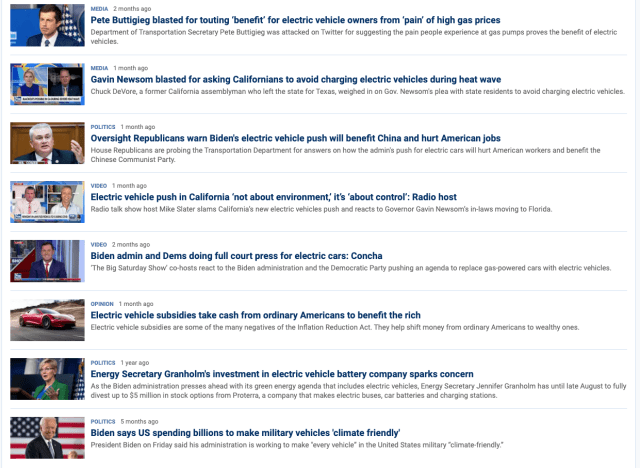 Some Fox News headlines about electric vehicles from the last year include: