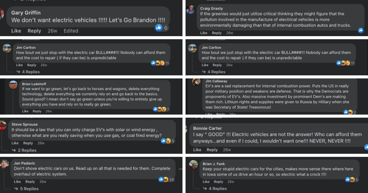 You could scroll just about any EV story shared by an Iowa media outlet and see similar remarks.