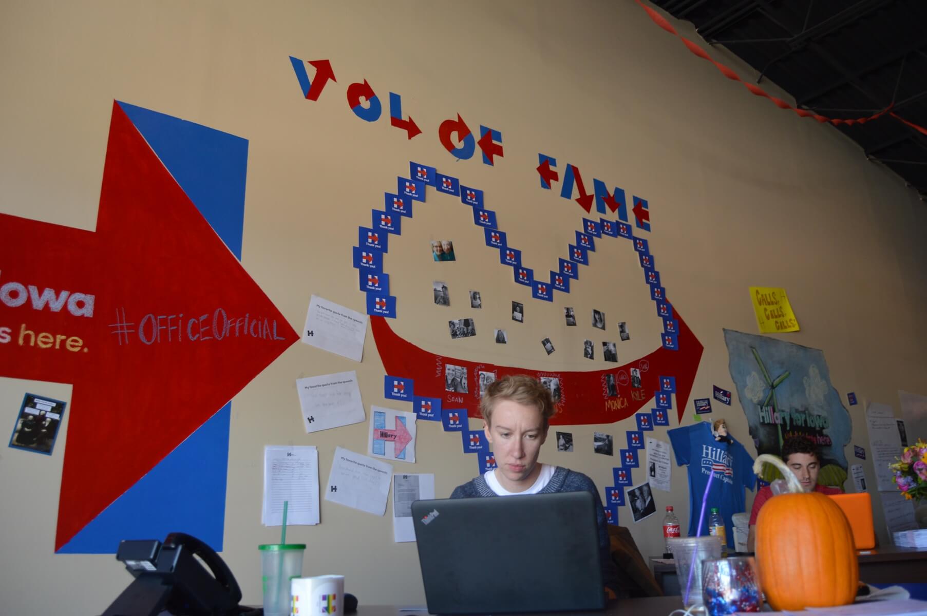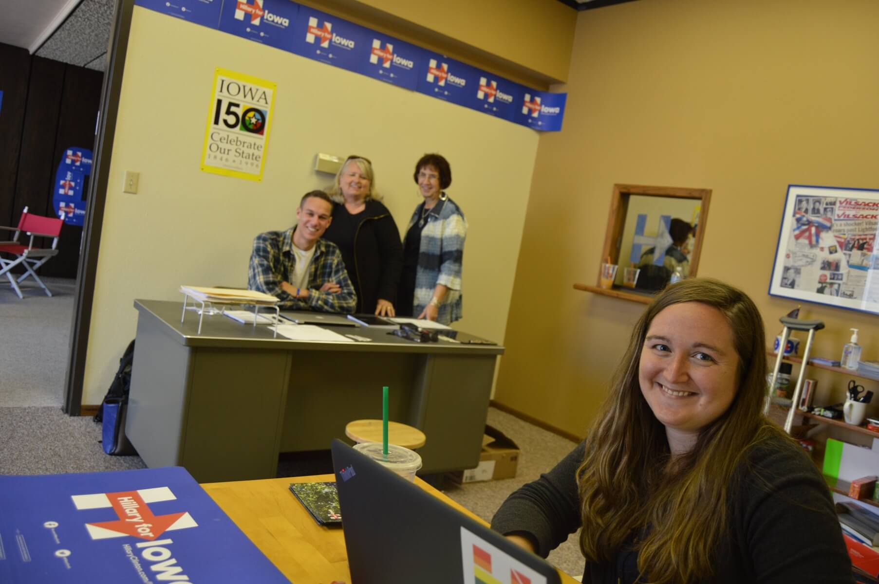 Magill sits in the local campaign office situated on the town’s main street, a surprisingly active place for four months before caucus night, filled with numerous staff, campaign fellows/interns and volunteers. She moved to Carroll back in April, the small regional population hub halfway between Des Moines and Sioux City, part of the first wave of staffers to hit the ground the very day Clinton announced. She worked out of her car and coffee shops for a few months, first organizing 13 rural counties from Sac to Ringgold.