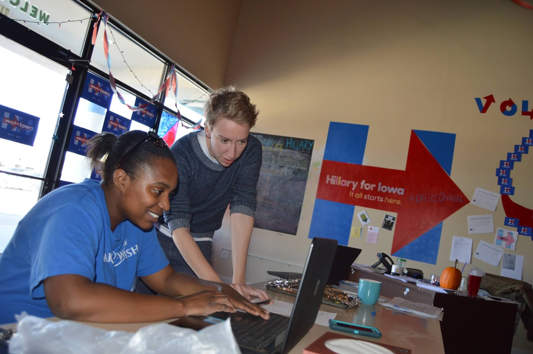 “A lot of them came from online – they signed up online through clicking on a link or visiting ‘Hillary for Iowa,’ visiting HillaryClinton.com, and that filtered down to me to give them a call,” Glass notes. “And our follow-up is 24 hours.”