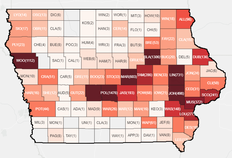 The numbers reported online by the Iowa Department of Public Health are behind one day, so these numbers don’t account for tests done on Saturday.