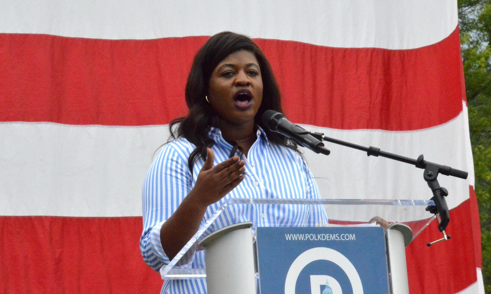 DeJear talked about Iowa being far ahead of the national curve on desegregating schools and legalizing gay marriage. She also pointed toward the diverse field of candidates Democrats have on the ticket this year and in leadership positions.