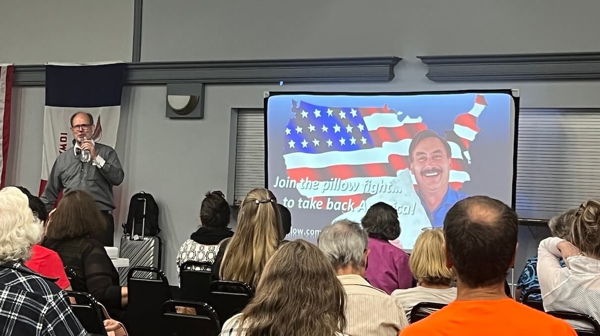 He spoke to a Trump-inspired Iowa grassroots group called “Iowa Canvassing” late last month at the Heartland Acres Event Center in Independence. During a 3-hour presentation, he galvanized the crowd of close to 100 attendees in their mission to uncover widespread voter fraud in the state.