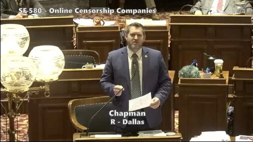 Chapman then said he would use his power as president of the Iowa Senate to make stricter laws banning obscene material in school and increase the penalties.