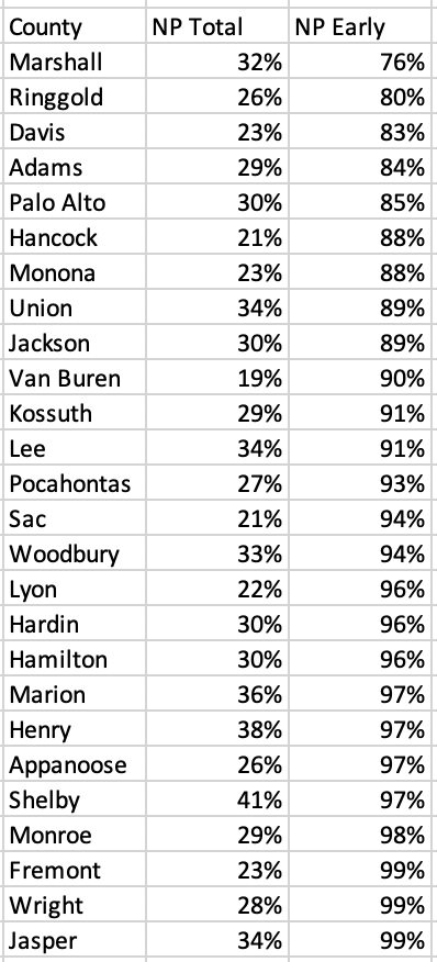 Both Jefferson and Winneshiek often vote early in large numbers, so it didn’t require too much a bump this year to match their total votes early on.