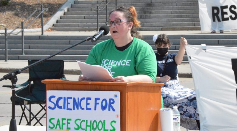 The Disability Caucus, Russell-Steuart and Dahl joined other Iowa moms to organize the Safe At School Sit-in in front of the Iowa Capitol before school started. There, the people who gathered asked Gov. Kim Reynolds to remove the ban on schools requiring masks for students and faculty she passed in May.