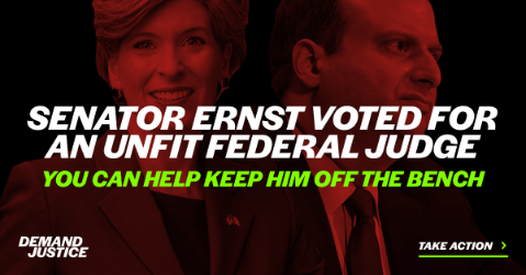Because of that vote, Demand Justice, a progressive judicial reform advocacy group, will begin running ads in Iowa calling her out for the vote.