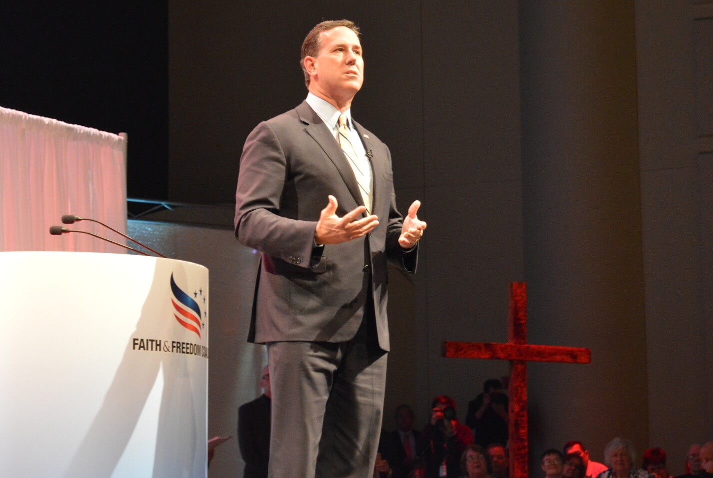 Marco Rubio Faith and FreedomOthers played to the crowd. Rubio sounded like a president. First up to speak, Rubio didn’t get many applause lines, but he held the audience’s attention with a broad, over-arching vision for America in the 21st Century. He talked about his immigrant family’s journey from Cuba, America’s role around the world, dangers from nuclear nations, and the American Dream. Rubio closed with a story of the day his grandfather died, remembering how he rode with him to the hospital. Rubio said he told his grandfather that he would study and take advantage of the opportunities America presented that his grandfather never experienced.