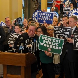 Widow of Iowa correctional officer killed on the job speaks in support of unions