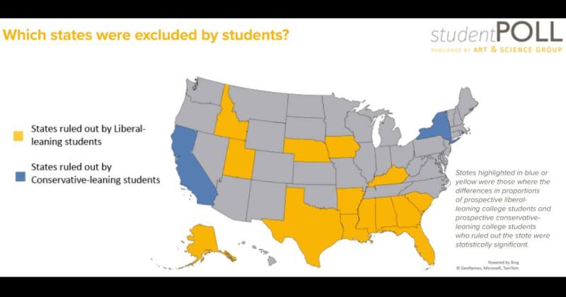 One in four high school seniors say they’re eliminating some colleges from their searches because of the politics of the state the school is in, according to a new student poll conducted this year by Art & Science Group.