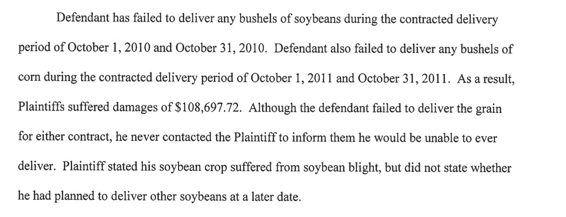 In 2012, the Gold-Eagle Cooperative sued Daggy after he was contracted to deliver 10,000 bushels of soybeans and 30,000 bushels of corn. According to the since-dismissed lawsuit, Daggy didn’t deliver a single grain to the cooperative.