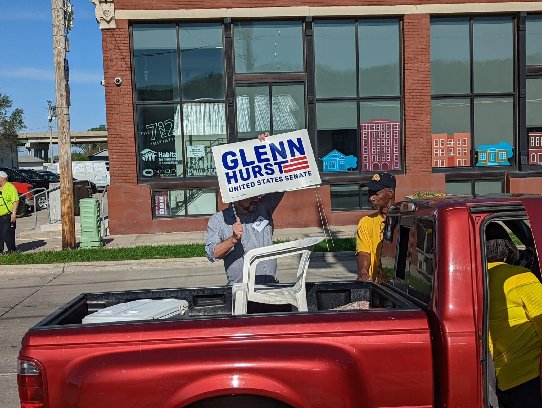 About two hours before the Celebrate CB Parade begins on Saturday morning, Dr. Glenn Hurst and other volunteers are taping campaign signs to a Ford Ranger pickup truck, a less than glamorous job for a US Senate hopeful but one he doesn’t seem to mind.