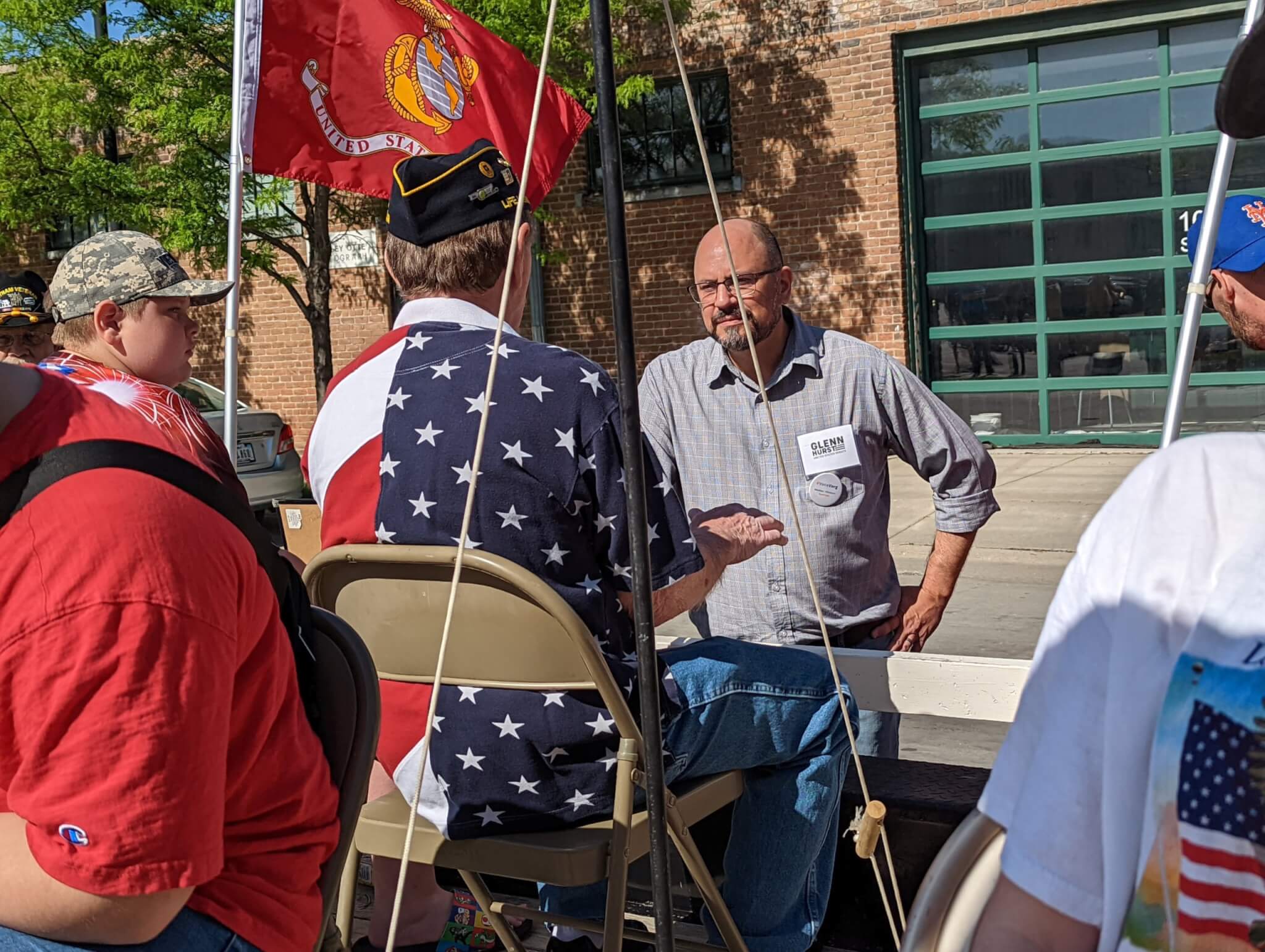 Toward the end of the parade, Hurst had to duck out to take a video call with the Iowa chapter of the Citizens’ Climate Lobby. Situated under a nice shady tree, Hurst, the only Senate candidate of either party who is in support of the Green New Deal, answered a few questions about his campaign’s climate views: