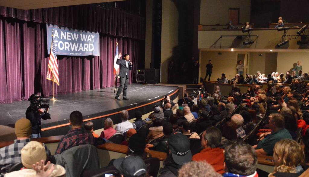 But the candidate that perhaps more eyes should be on at this point is Andrew Yang, who was in the middle of his 17-day bus tour throughout Iowa. Bringing out nearly 250 people on a snowy Friday night in Fairfield, with the help of former candidate Marianne Williamson, Yang delivered a well-honed, convincing argument that might win over more Iowans than many expect.