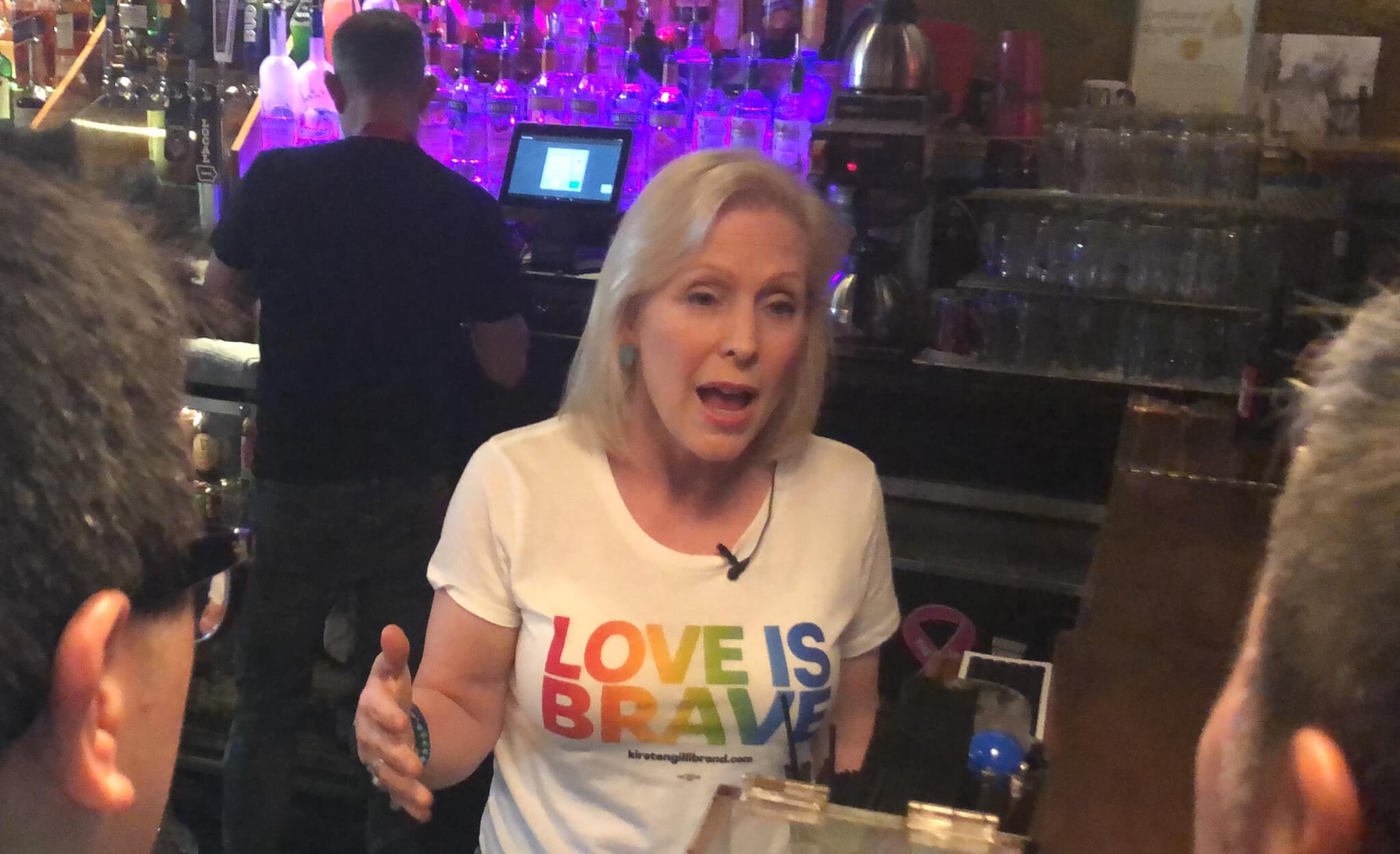 Gillibrand talked with bar patrons about her new, extensive LGBTQ policy proposal that she rolled out this week.