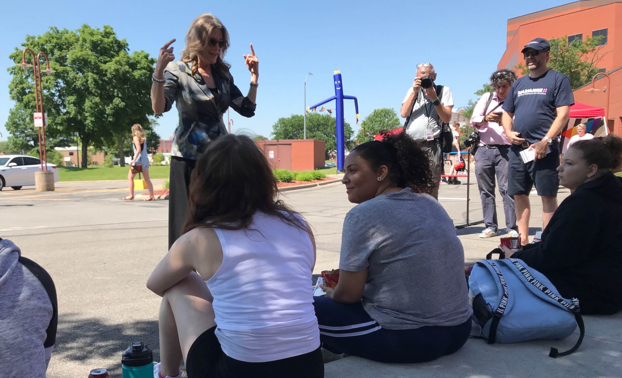 Outside the Saddle, Gillibrand mingled with Pride Fest attendees, occasionally answering questions about her policy proposals. Many young Iowans stopped with surprise when she passed by, recognizing her from the news.