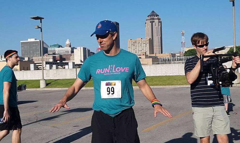 Beto O’Rourke ran the 5K Fun Run at Capital City Pride Fest Saturday morning in about 27 minutes and 10 seconds. He ran with his wife, Amy, and Iowa politician J.D. Scholten.