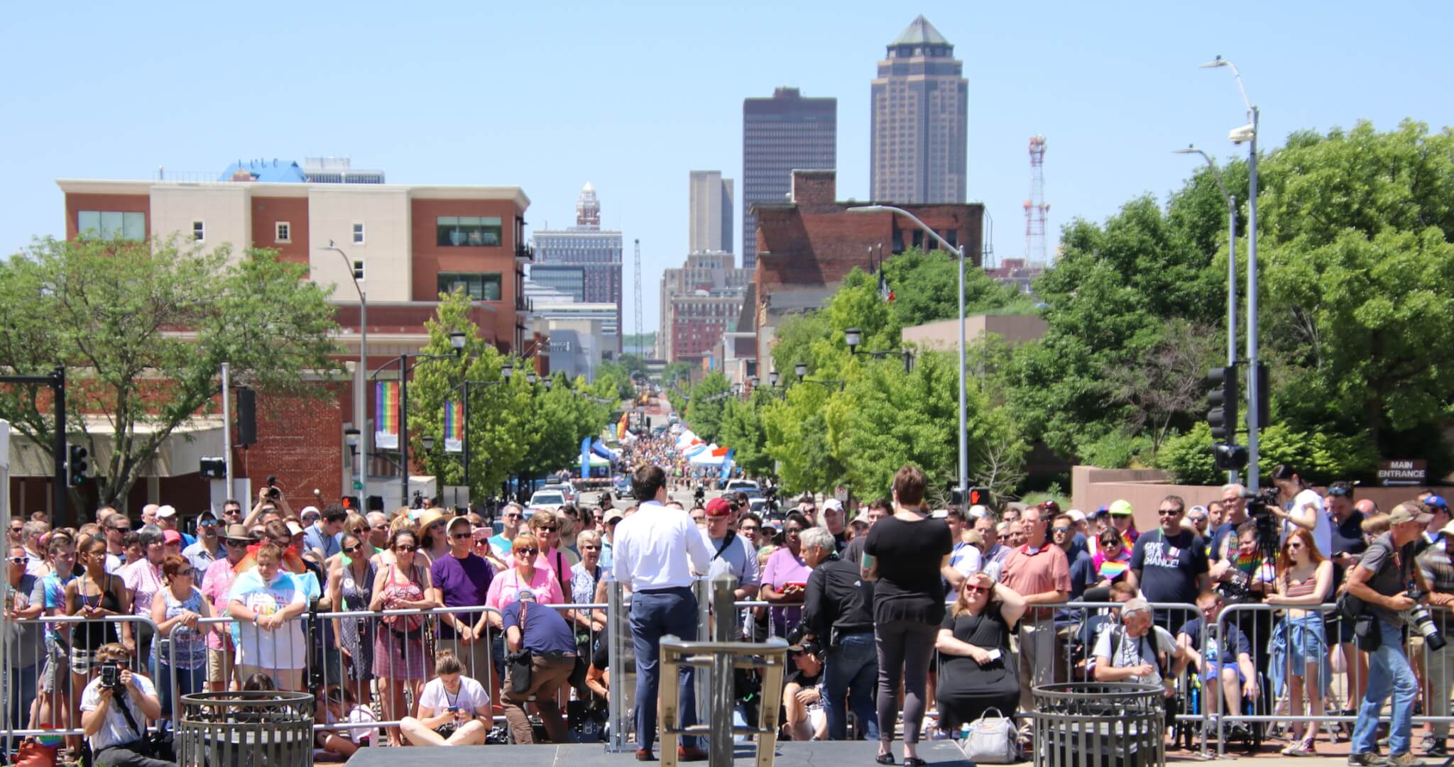 Pete Buttigieg addressed several hundred people who were celebrating the tenth year of marriage equality in Iowa. He met the Varnums of the historic Varnum decision, which legalized gay marriage in the state in 2009.